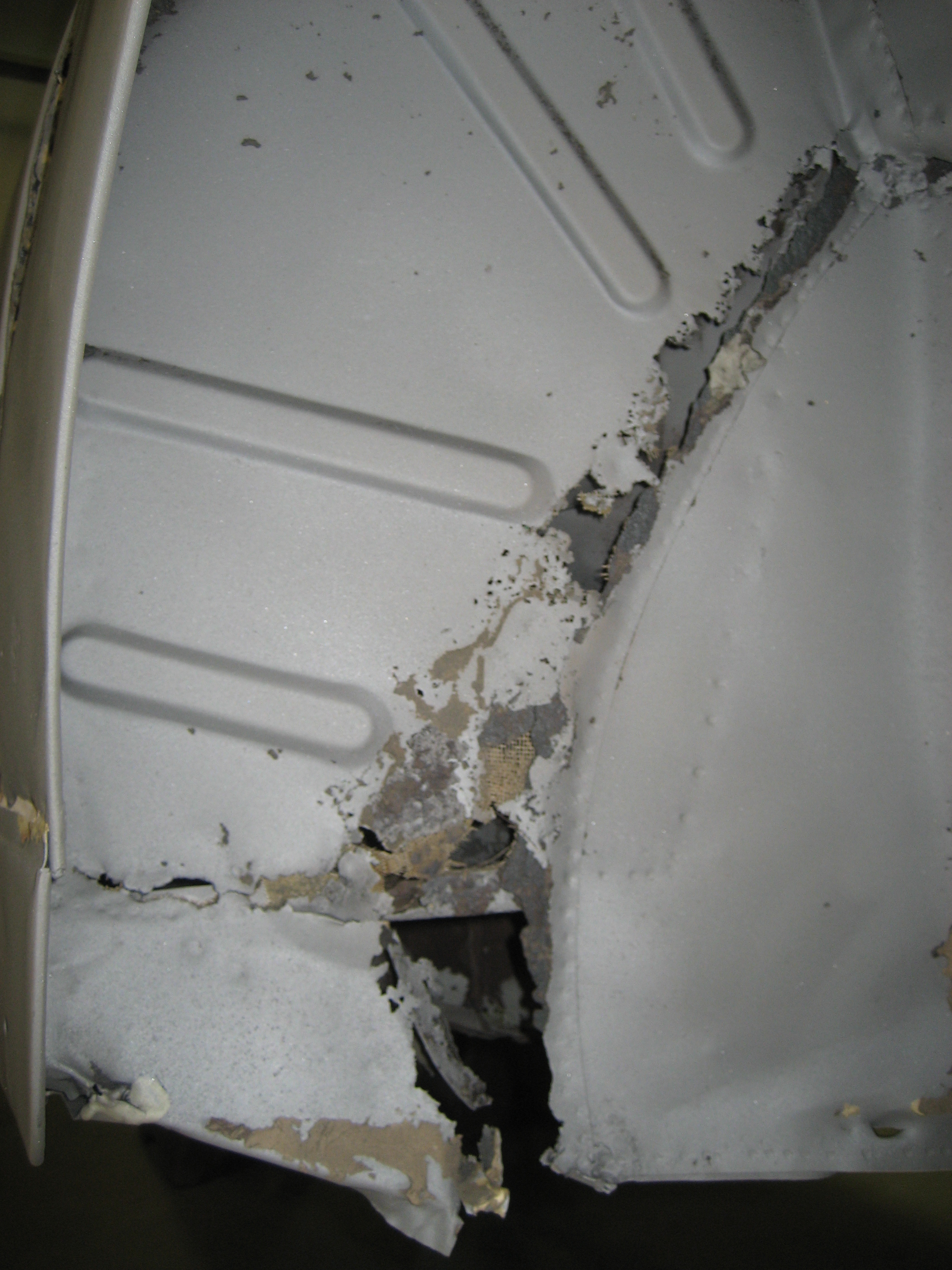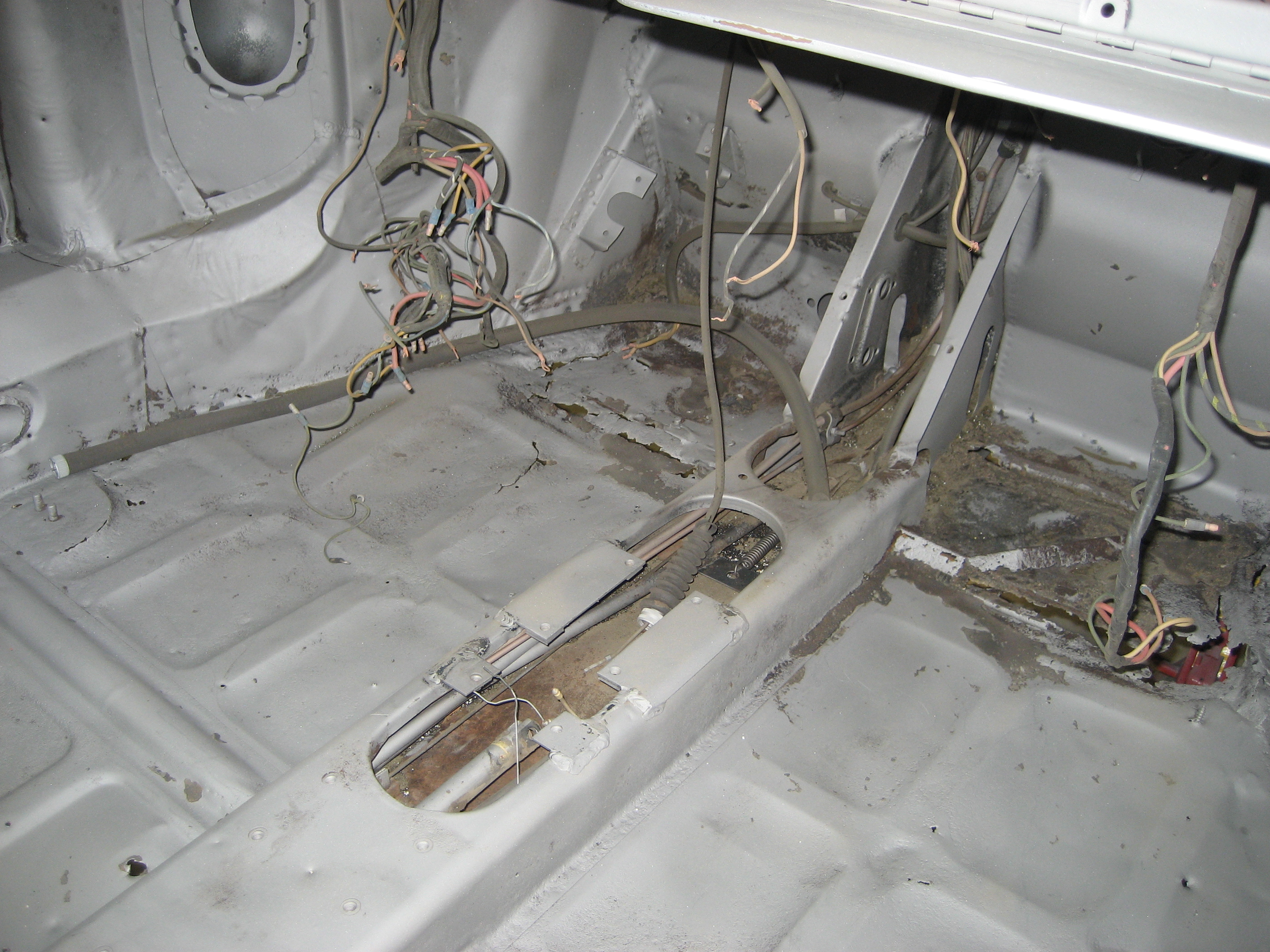 Left rear floor and rocker also shows trailing arm mount.